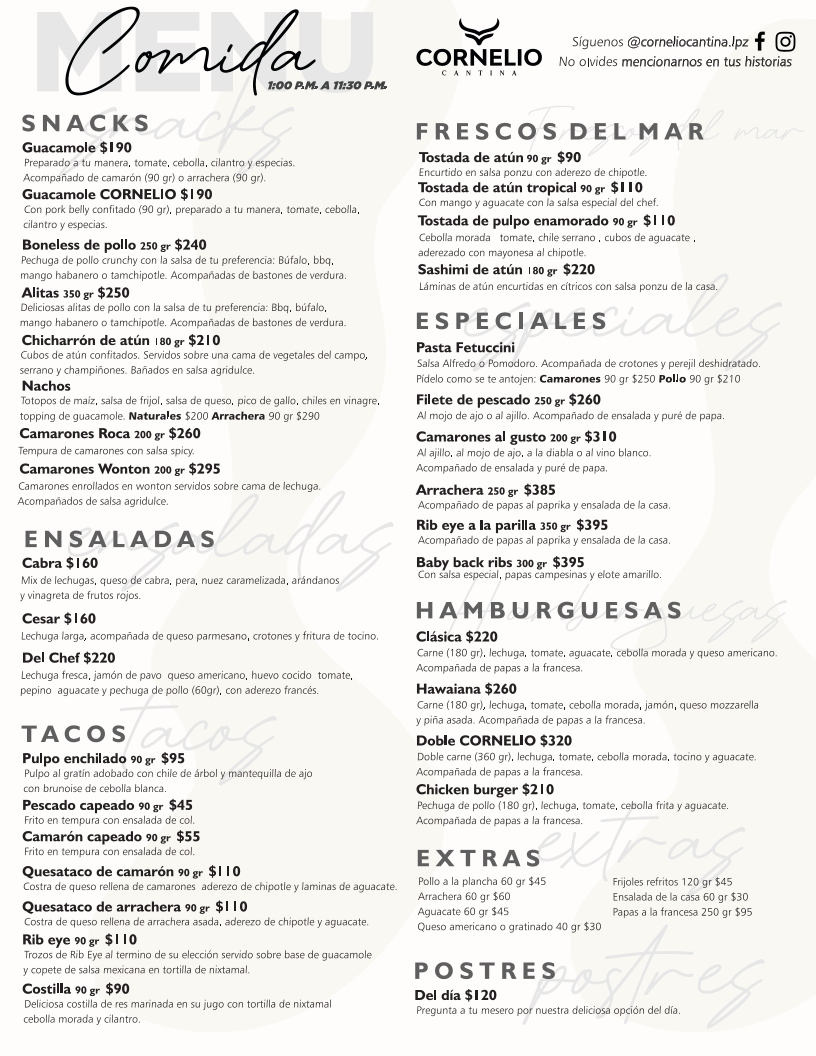 Welcome to Cornelio Cantina, a hidden gem in La Paz, Mexico, located at Paseo Alvaro Obregon 1665. Here, culinary innovation meets warm ambiance, offering a delightful menu that stands out on the vibrant Malecon.
